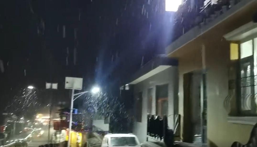 据“北京门头沟”微信公众号,10月18日晚上,门头沟区清水镇江水河村,迎来入秋以来第一场降雪。纷纷扬扬的雪花飘飘洒洒,落在了屋檐上、树枝上、山峦上。银装素裹,静谧纯净,一时间,秋色与雪景相遇,构成了一幅动人的画卷。