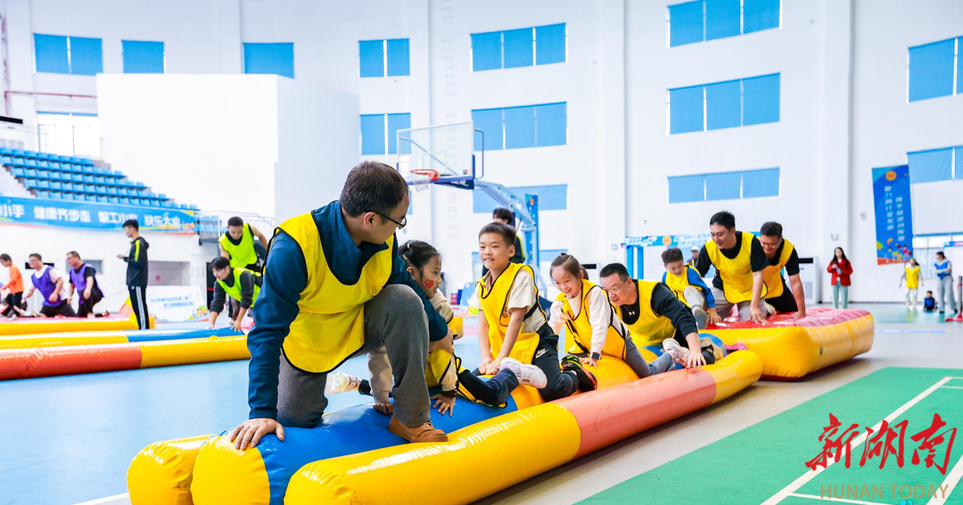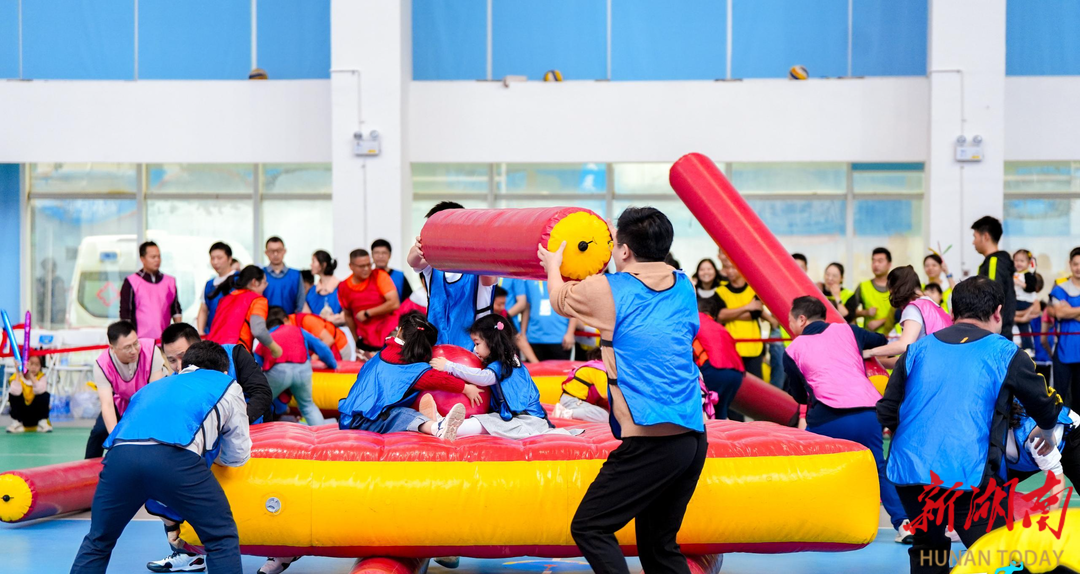 湖南日报·新湖南客户端10月19日讯(记者 曾楚禹 万丽君 通讯员 刘扬扬)“一二、一二!稳住脚步!”“加油!最后冲刺啦!”10月19日上午,长沙职业教育基地体育馆内,此起彼伏的口号声与呐喊声格外响亮,这是“聚力同行促发展・携手奋进创辉煌”2025年雨花经开区第二届职工家庭趣味运动会现场。来自园区机关、企事业单位及学校的20余组职工家庭积极赴约,用热情驱散凉意,在协作与欢笑中共享运动乐趣。