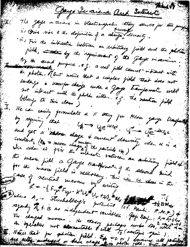 1947年杨振宁笔记中的一页(由杨振宁先生提供)