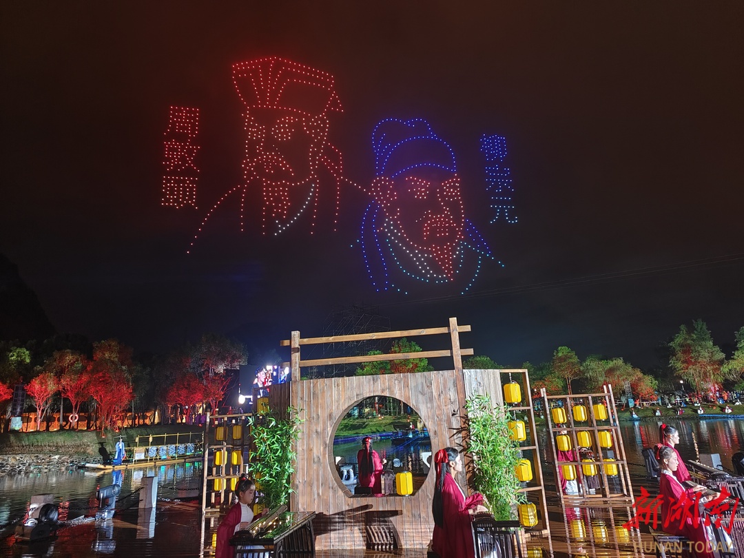 湖南日报·新湖南客户端10月19日讯(记者 严万达 黄柳英 郭利 通讯员 荆道滨)激光投影、无人机等科技手段,勾勒出“九嶷山上白云飞,帝子乘风下翠微”的壮丽画卷;电动竹筏静谧巡游,再现舜帝南巡意境…… 今晚,第四届永州旅游发展大会在宁远县九嶷山南风集开幕。开幕式创新采用“行进式剧场+非遗展演+数字文脉解码”等方式,为游客打造沉浸式文旅新体验。