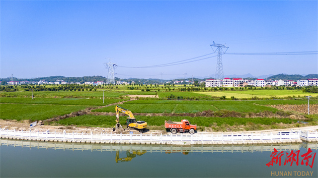 In recent years, the Lianyuan City Authority has focused on river ecological management, advancing a series of measures such as promoting ecological restoration, improving water quality, and fostering shared benefits for residents. These efforts have created an ecological environment characterized by "smooth rivers, clear waters, and beautiful scenery." The photo shows construction vehicles clearing debris along the Sunshui River section in Jinpen Village, Yangshi Town, Lianyuan City. (Photo/Wu Yonghua)