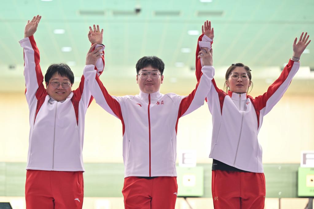 另一场决赛中,50米步枪三姿混合团体项目冠军在浙江队的两对组合之间展开。赵中豪/王子菲在“抢31”赛制中以34:26击败队友沈宇辰/韩佳予,为浙江队包揽金、银牌。天津队赵文宇/张力元获得铜牌。
