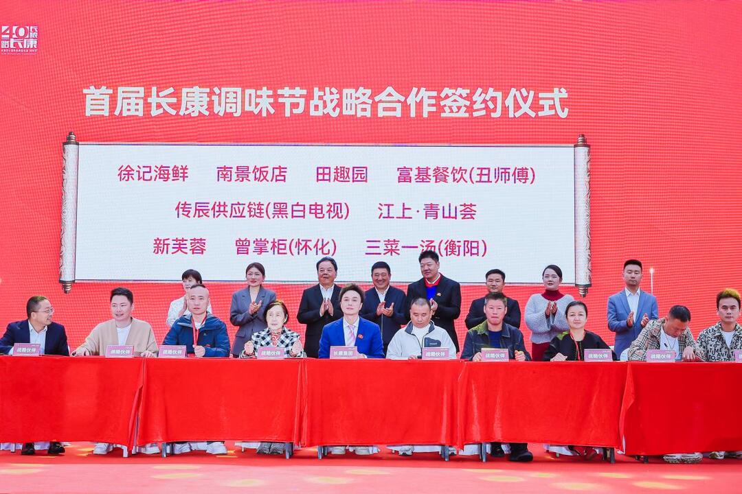 在战略合作环节,长康集团执行总裁邵孟高代表集团与多家知名企业完成了三轮签约。签约方涵盖湖南省军粮长沙供应站、希尔顿酒店、柬埔寨湖南商会等知名酒店及海外渠道,南景饭店、田趣园、富基餐饮(丑师傅)等湘菜品牌,以及上海大米先生、广州酒家、重庆小龙坎等省外餐饮企业,共计二十余家。这一系列的合作标志着长康调味品在餐饮渠道的进一步拓展,深化了品牌与市场之间的战略协同。