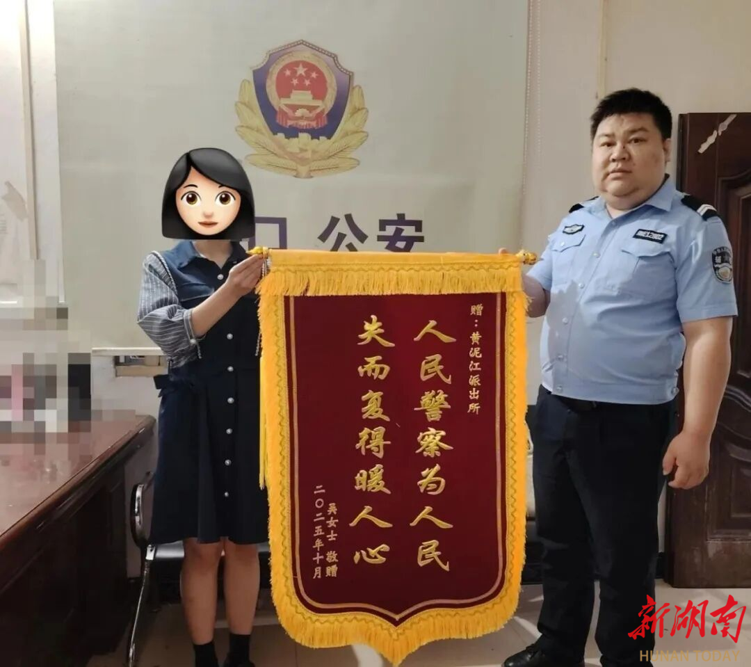 10月6日,洞口县公安局黄泥江派出所收到市民吴女士送来的一面锦旗,上面写道:“人民警察为人民 失而复得暖人心”,感谢派出所民警帮助找回其父亲遗失的手机。