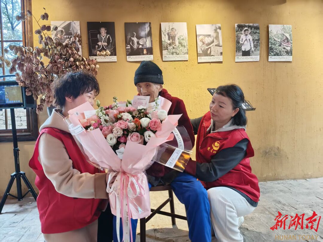 “好,好,谢谢你们啦!”10月19日清晨,华容县三封寺镇莲花堰村,105岁的杨六秀奶奶坐在人群中央,双手合十向周围的人连连道谢。她头戴金灿灿的生日冠,身上那件深红色驼绒夹衣是刚收到的新礼物,布满皱纹的脸上,笑容像秋日菊花般明朗灿烂。围在她身边的,是来自华容县“爱在始终”志愿者协会的“红马甲”们——这个自2017年成立以来,便以“念念为他人着想,事事以奉献为上”为理念,专注传播爱、践行爱的公益团队。