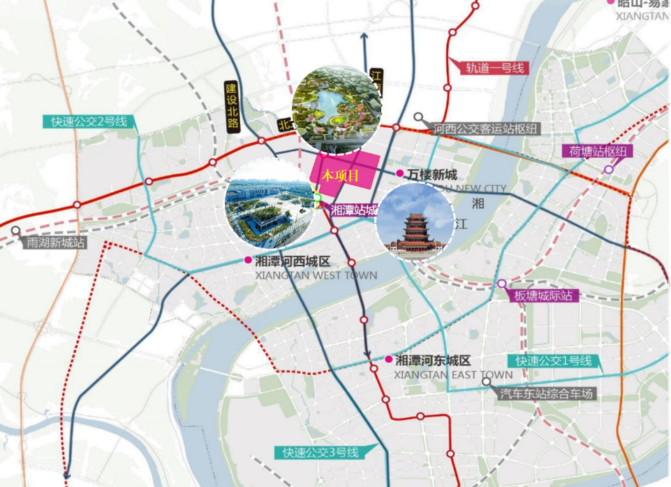 “长株潭·未来城”片区位于湘潭国家级经济开发区——湘潭经开区核心腹地,北临兴隆湖、东靠沿江路、南依沪昆高速、西贴潭州大道,总用地面积2785.31亩,以商住用地为主导。