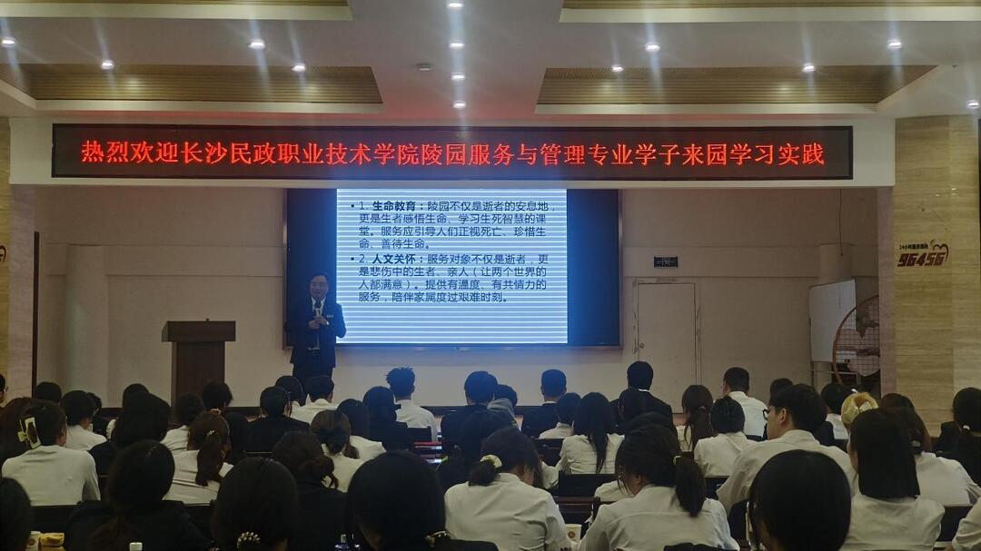 为扎实推动现代学徒制人才培养模式落地,强化学生岗位认知与实践能力,10月16日至17日,长沙民政职院殡仪学院陵园服务与管理专业2023级全体学生,在李毓超、郭心仪等专业教师带领下,走进校企合作基地——湖南唐人万寿园,开展为期两天的“企业课堂”实践教学。此次活动以真实工作场景为课堂,通过系统化现场教学与岗位观摩,助力学生实现从理论到实践的跨越。