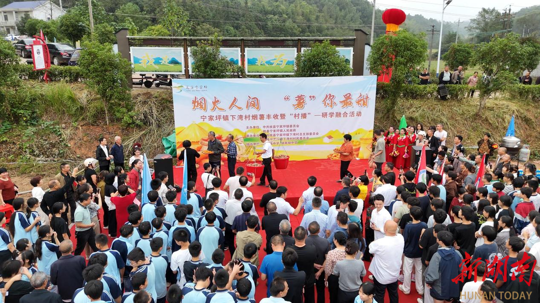 金秋十月,五谷丰登,硕果盈枝。10月17日,一场以“烟火人间·‘薯’你最甜”为主题的烟薯丰收盛典暨“村播+研学”融合活动,在攸县宁家坪镇下湾村隆重启幕。活动以农耕体验、文化展演、直播助农、研学实践四大板块为引擎,打造了一场融合乡土韵味与现代活力的乡村盛会,吸引了周边村民、亲子家庭、研学团队及直播达人等数百人踊跃参与,现场人声鼎沸,热闹非凡。