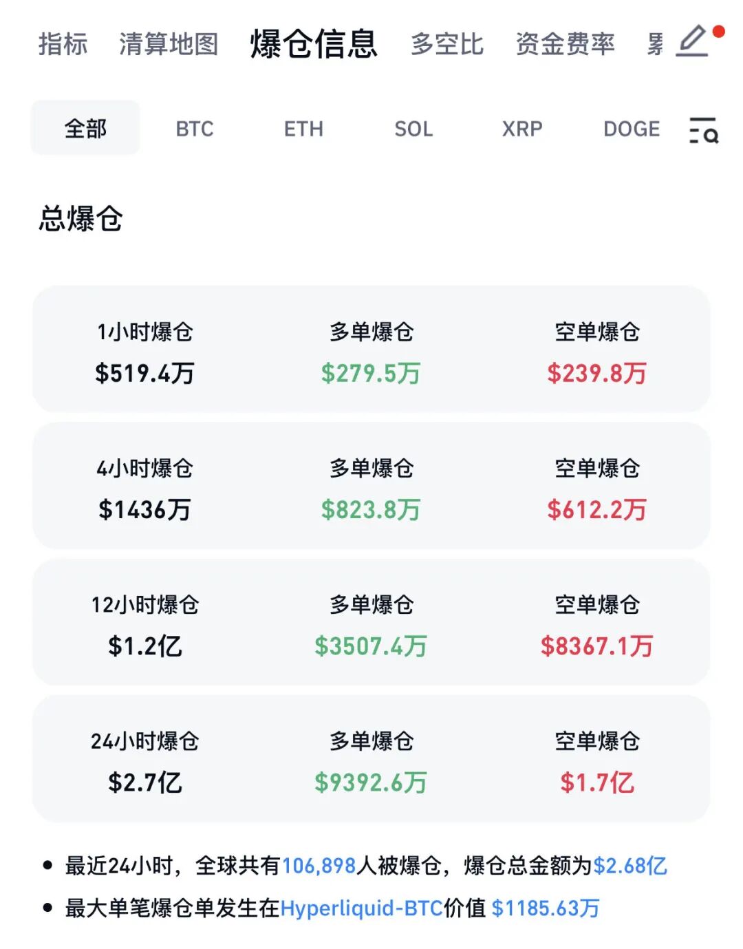 20日,加密货币市场全线大涨,比特币涨至111065.7美元,过去24小时内涨3.92%;以太坊涨至4073.88美元,过去24小时内涨4.54%。CoinGlass数据显示,近24小时全球超10万人爆仓,总额达2.68亿美元。