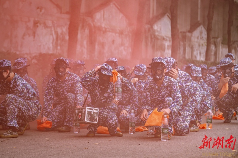 “二十八连,紧急集合!”近日,中南大学武装部组织2025级军训学生开展行军拉练。在模拟战场环境中接连上演核生化防护、敌机空袭规避、战地救护等实战化科目,以沉浸式训练锤炼青年学子的国防素养与意志品质,为校园军训注入浓厚“战味”。