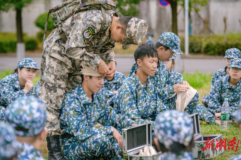 拉练途中,模拟毒烟突然弥漫,新生们取出防护装备,迅速完成防毒面罩佩戴,快速通过。战地救护环节更显专业实操性。在教官现场示范后,新生们分组开展止血包扎、骨折固定、伤员搬运等训练。“以前只在电视上见过这些场景,现在亲手操作才知道每一个动作都关乎生死。”参与训练的新生王同学说。