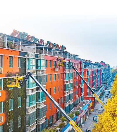 老旧小区改造是提升居民居住品质、保障居民安居乐业的重要举措。图为安徽芜湖繁昌区,工人在进行老旧小区改造。肖本祥摄(人民视觉)