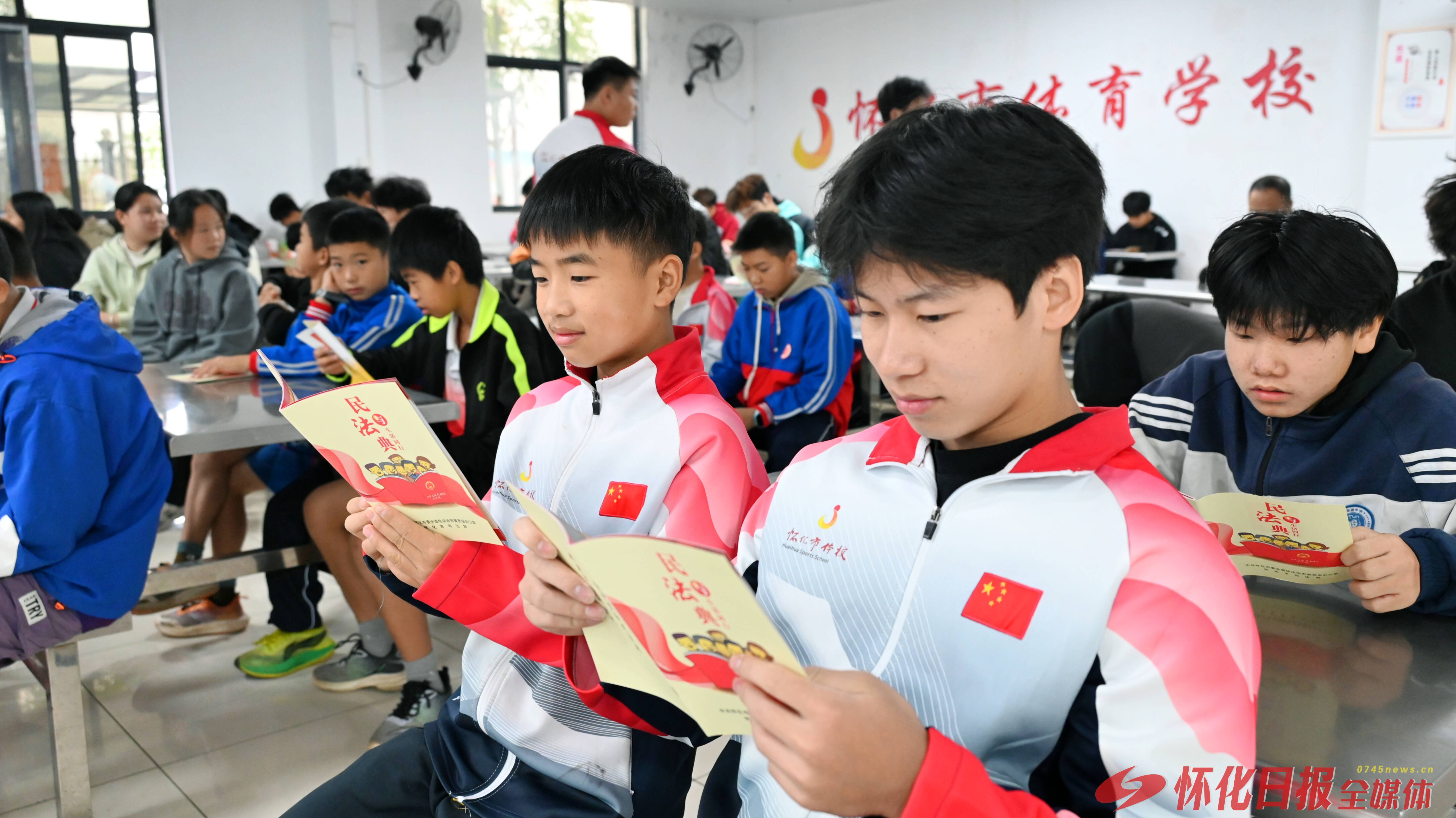 (体育学子认真学习法治宣传手册。怀化日报全媒体记者 谭仕光 摄)