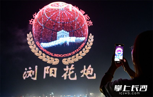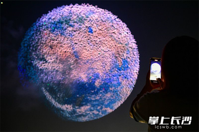 This fireworks spectacle involves tens of thousands of drones. It relies on an intelligent program control system that enables precise synchronization between firework bursts and light patterns formed by drones. (Photo/Peng Hongxia, Changsha Evening News)