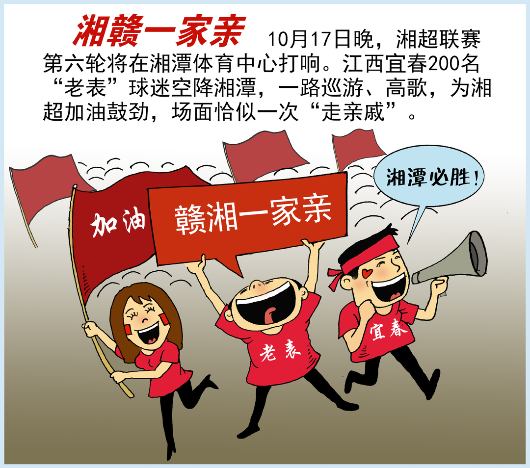 即日起,新湖南客户端湘超频道联合湖南省美术家协会漫画艺委会开设“漫画湘超”栏目,诚邀广大球迷、漫画爱好者、出图高手、造梗人才加盟。风格不限,独幅或连环漫画均可。
