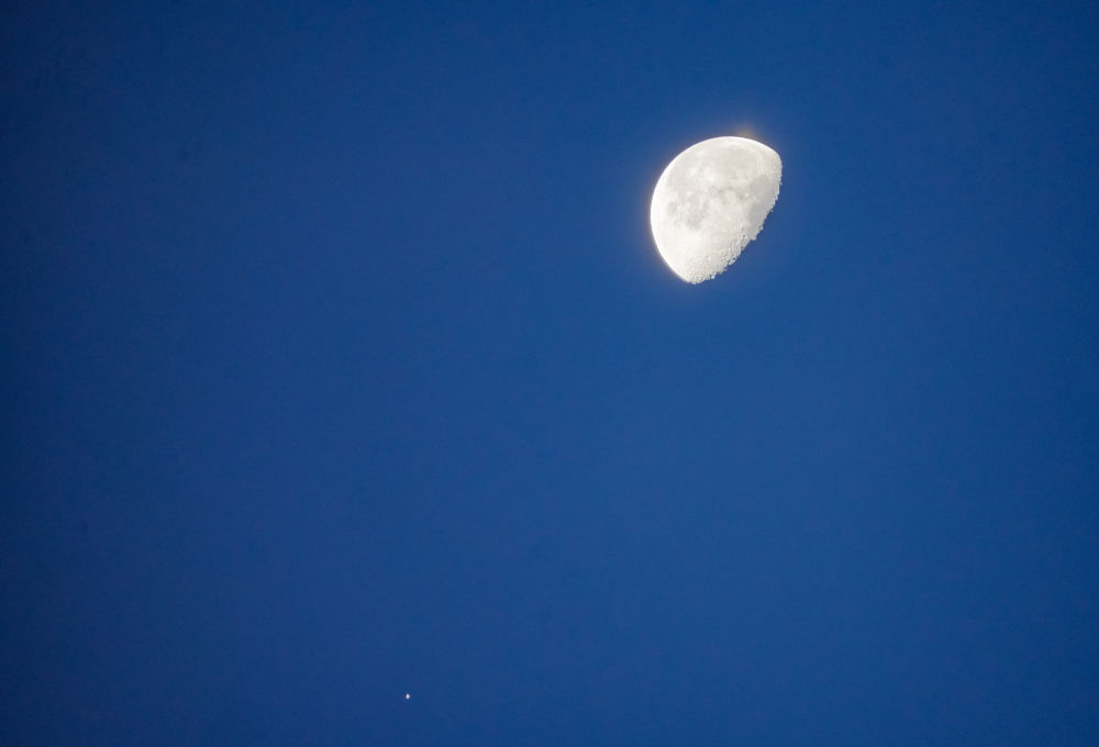 2022年1月7日水星东大距,这是同年1月4日在天津东丽区拍摄的水星和月亮。(杨婧 摄)