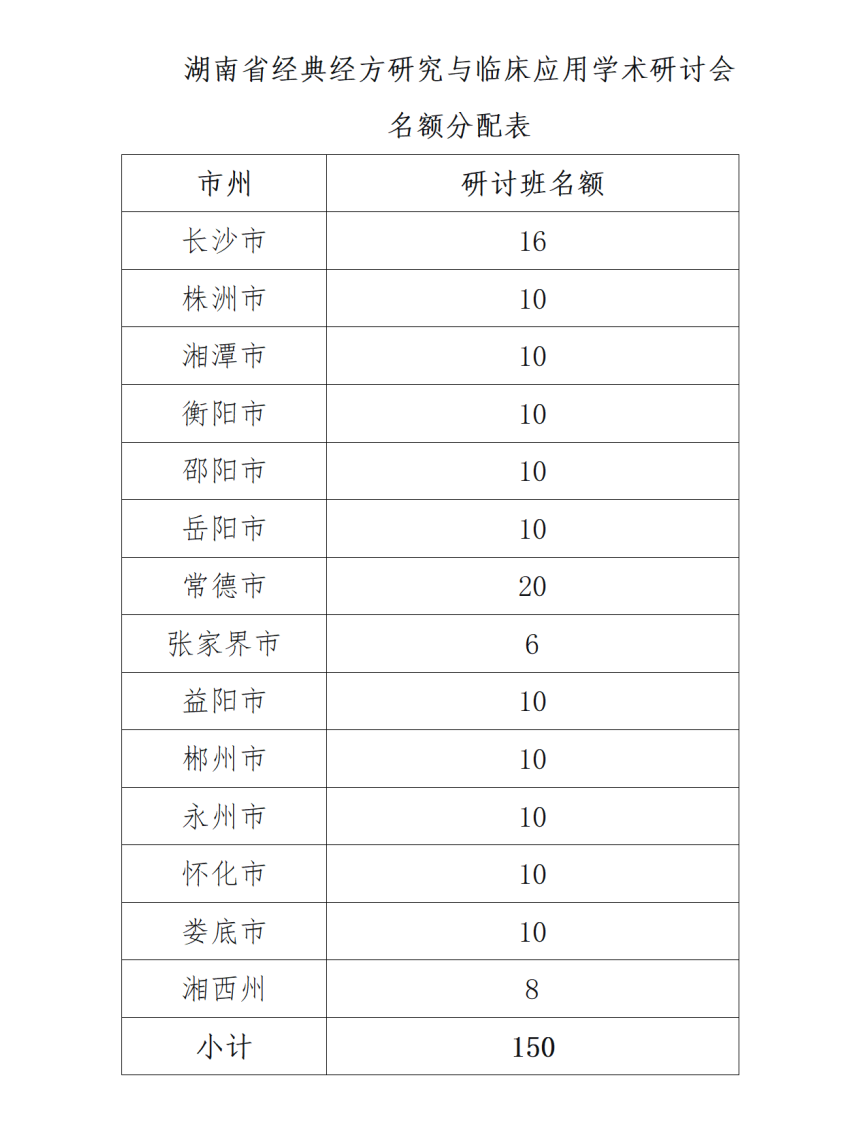全省各中医医院、中西医结合医院对中医经方具有浓厚兴趣的临床医师。计划邀请全省14个市州,参会规模约150人,具体名额分配表如下:
