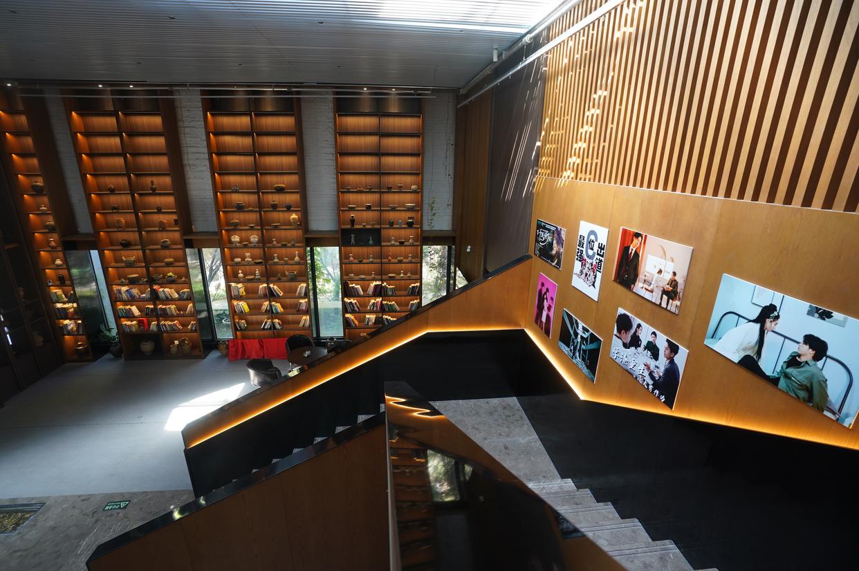 醉库文创园由工业厂房改造而来,颇有复古之风。醉影场则是一栋独立大楼,推开沉甸甸的大门,仿佛走进了小说中的世家豪宅:装潢豪华,中庭挑高极高,水晶灯闪着细碎的夺目光芒。