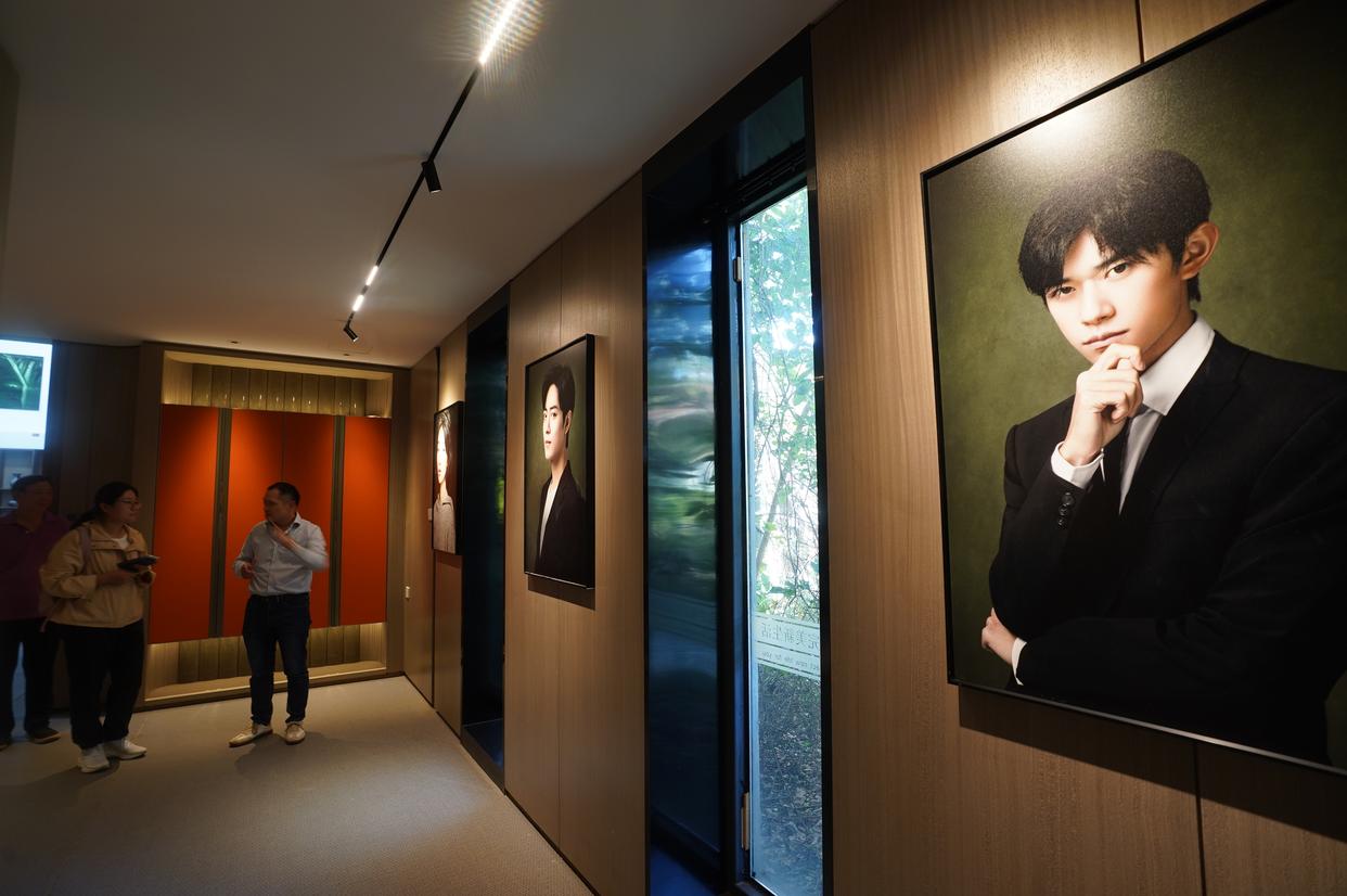 “这栋楼有1000平方米,每个房间都有布景,我带你逛逛。”文创园党支部书记秦凤武带着记者在各房间中穿梭。有雅致的茶室、西式餐厅,也有古董陈列室、书房、会议室、卧室。有一处房间看起来很像博物馆的一角,水晶保护罩中放着玉石展品,顶灯散发出柔和的光,让人禁不住想到短剧中经常出现的拍卖现场。