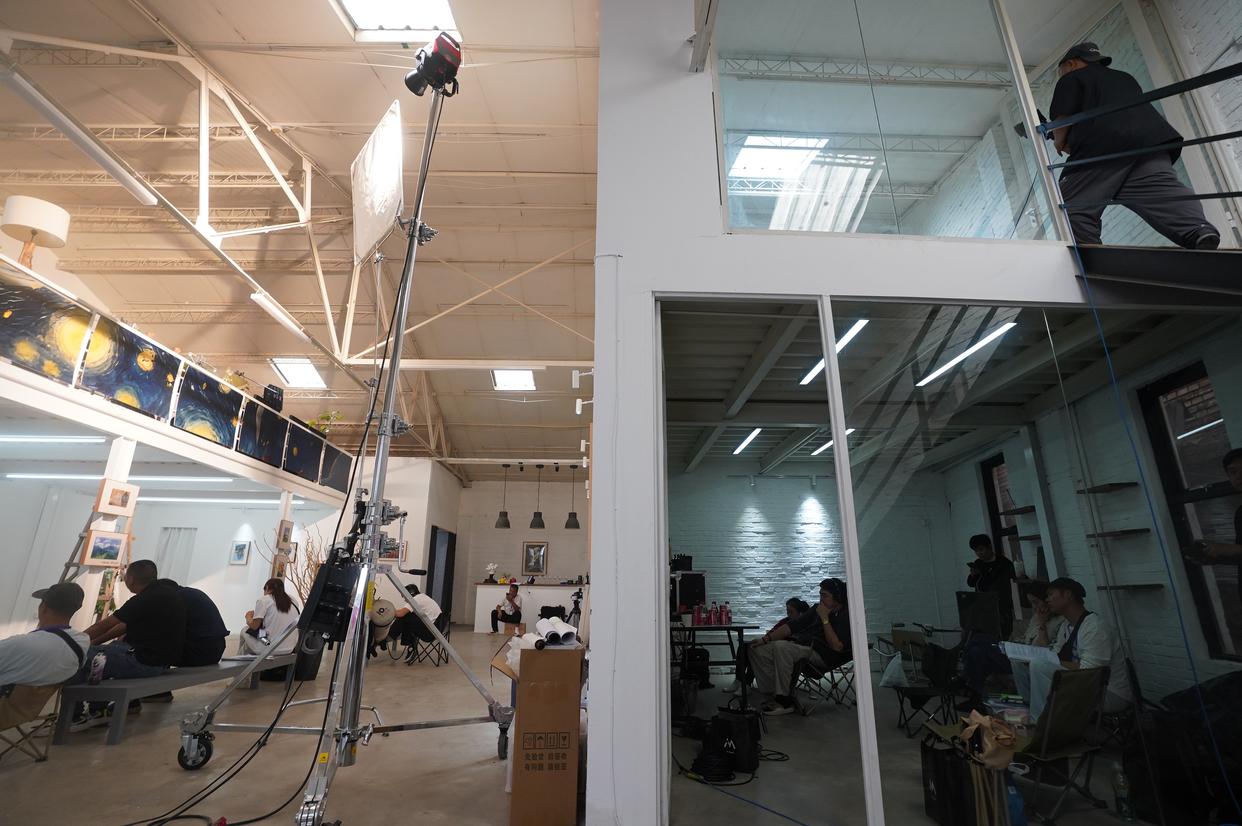 “这是一部艺术主题的短剧,没有太多的狗血、反转和霸总。故事开始于一场离奇的车祸……”制片人常露介绍,整个片子会用到大约20个场景,包括别墅、画廊、发布会、宴会厅、卧室等,基本在醉库都能完成拍摄。“剧组每天都在争分夺秒,一天拍摄14个小时。所有场景都能在崔各庄拍摄,省了我们很多转场时间。”