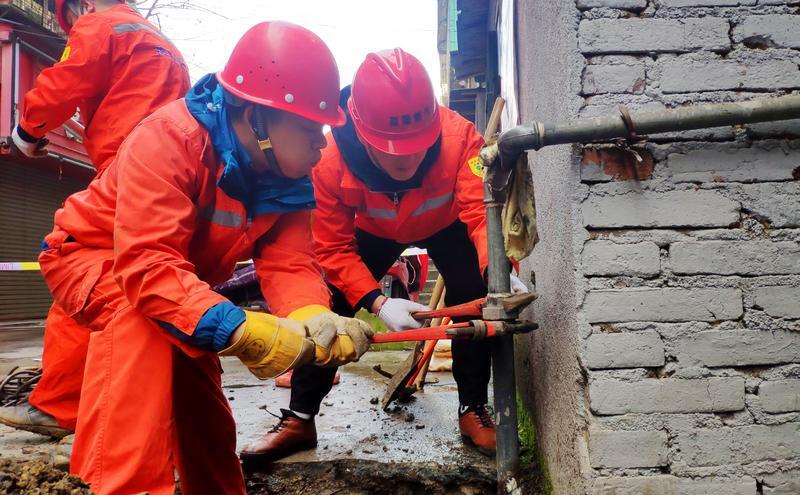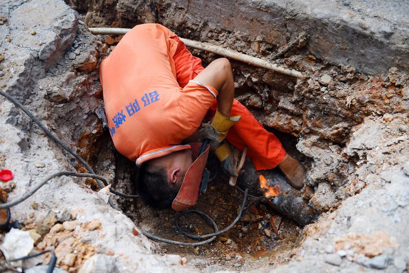 抢修人员对燃气管道进行抢修。 申兴刚 摄