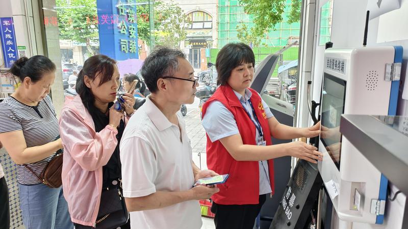 市燃气公司志愿者指导燃气用户通过自助设备缴费。 申兴刚 摄