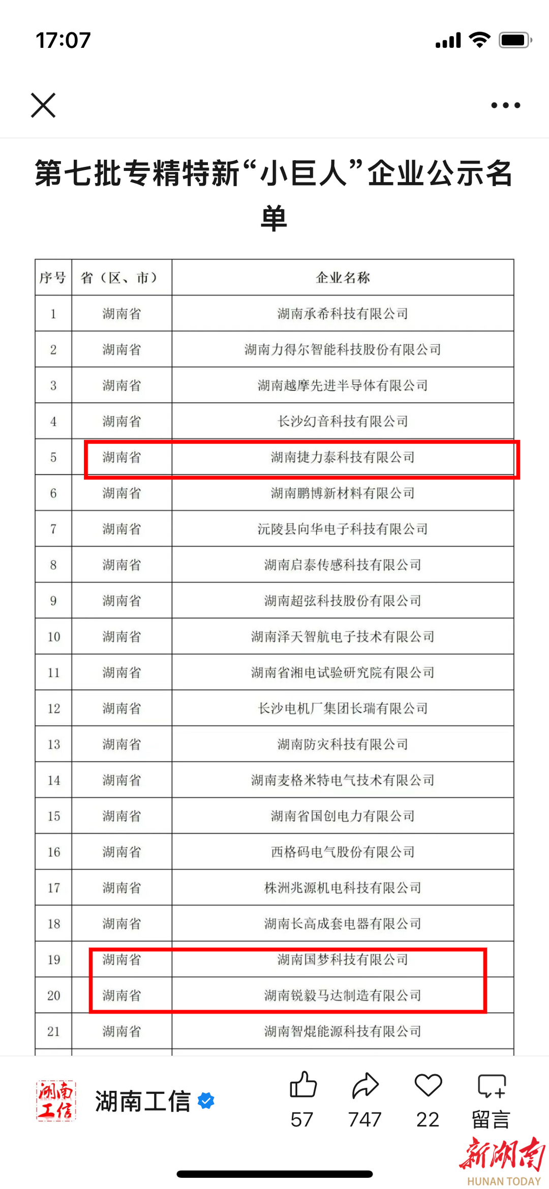 湖南日报·新湖南客户端10月21日讯(记者 杨永玲 通讯员 王静 屈昊)近期,工业和信息化部公示第七批专精特新“小巨人”企业和2025年专精特新“小巨人”复核通过企业名单,永州市新增3家,复核通过4家。
