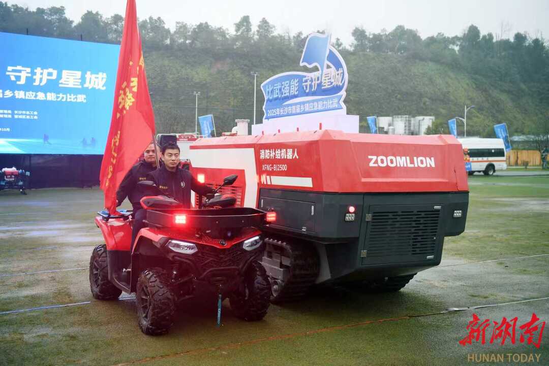 湖南日报·新湖南客户端10月21日讯(记者 李治 摄影 田超)中联重科自主研发的消防补给机器人昂首驶过赛道,稳稳托举着大赛会徽;望城区国债项目采购的多功能应急救援四轮越野摩托车紧随其后,车身上的大赛赛旗迎风舞动。今天上午,长沙市首届乡镇应急能力比武活动在望城区正式拉开帷幕。来自全市各区县(市)推选的 9 支乡镇(街道)应急救援队伍齐聚于此,将在为期两天的赛程中展开激烈角逐,全面展现基层应急力量的实战训练成果与专业处置素养。