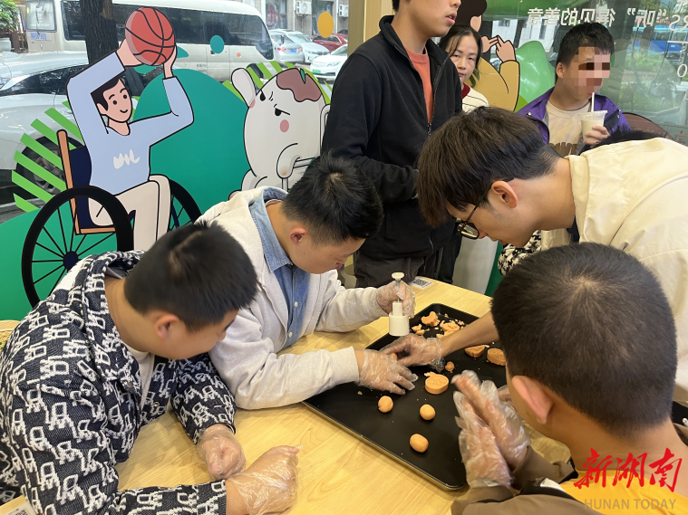 “孤独症孩子和其他心智障碍孩子不太一样,他们自我意识强、主意多,一旦环境变化或指令不明确,就容易出现不可预测的行为。”16岁的欧阳优楠是一名孤独症患者,他的母亲坦言,正因如此,融合活动对孩子的成长尤为珍贵,“这次活动设计得很贴心,前期准备工作都由机构完成,孩子们只需参与搓圆、压模等简单的操作环节。既能体验成就感,又能吃到自己做的食物,是一种正向激励。”