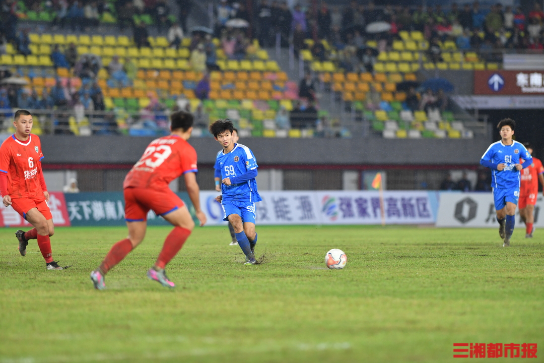 10月19日晚的张家界贺龙体育中心,马子宜在湘超联赛第六轮比赛中。(本文图片均为 通讯员 王志伟 摄)