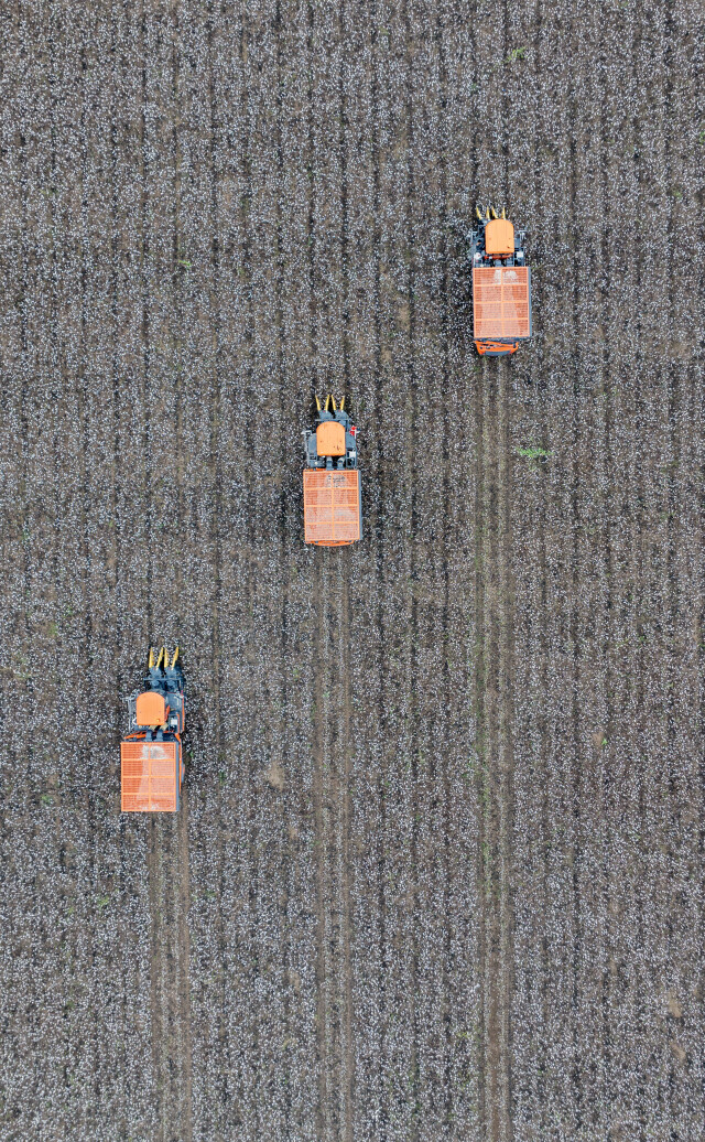 实现棉花机械化采收,还需农机与农艺相结合。湖南省农科院棉花与蚕桑研究所所长肖才升介绍,近年来,湖南已成功培育审定16个宜机棉花新品种,其中多个品种被遴选为国家及省级主推品种,为长江流域机采棉发展提供有力种源支撑;探索出的机械化植棉技术体系已基本成型,播种、飞防、脱叶等环节机械化水平显著提升。