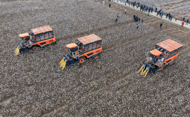 湖南日报10月21日讯(全媒体记者 胡盼盼 通讯员 梅正鼎 刘维帅)今天在岳阳市华容县团洲垸举行的全省机采棉现场观摩会上,3台采棉机轰隆作业,几分钟就收完1亩棉花。国家棉花产业技术体系首席科学家李付广称赞:“机器作业效率高、采净率高,湖南棉花采收迈向机械化。”