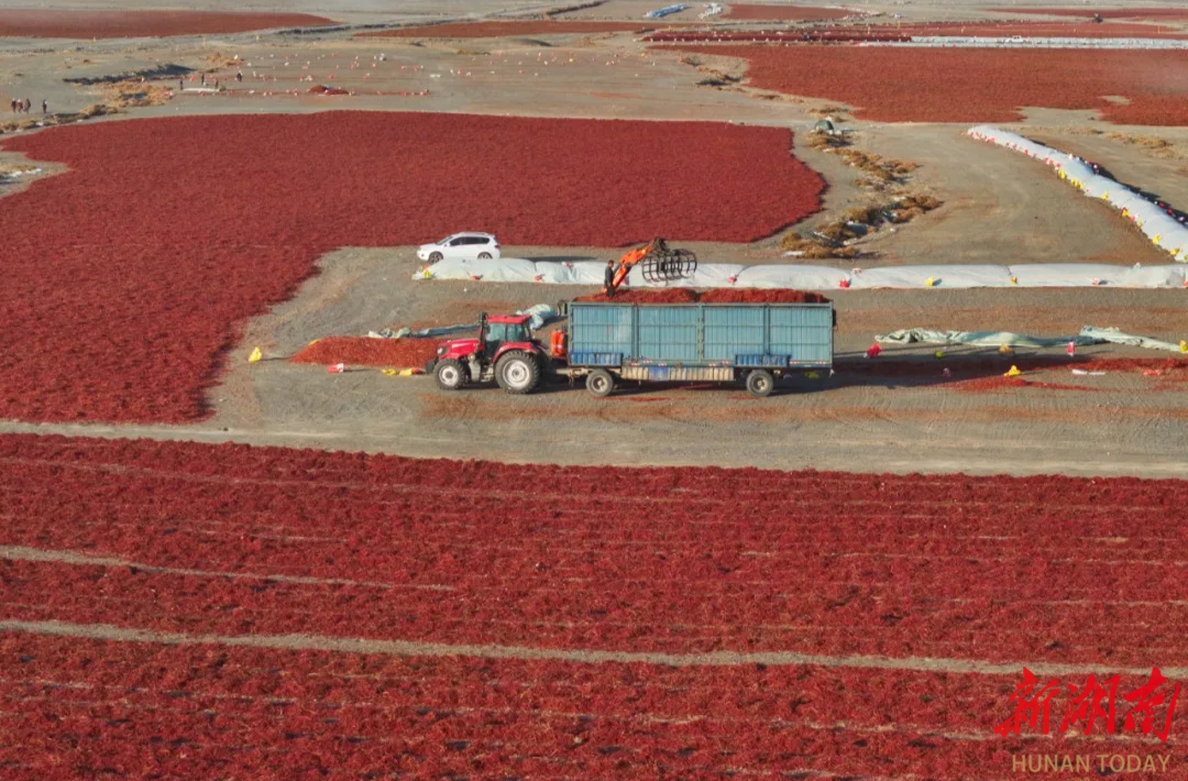 侃财君在天山北麓的沙湾市安集海镇看到,3万亩辣椒晾晒在戈壁滩上,成为新疆一道独特的风景线。