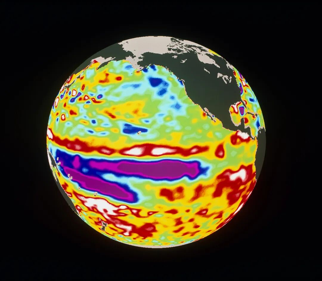 显示拉尼娜现象的彩色海平面地图(图源:视觉中国)