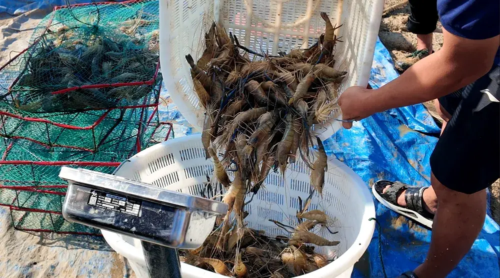 在基地分拣区,工人们麻利地将沼虾按个体大小分拣。冷鲜车旁,收购商正忙着称重打包。“每只沼虾100克左右即可出塘。”覃健告诉记者,今年虾塘养殖密度小,沼虾长势猛,出塘时普遍都是120克至140克。