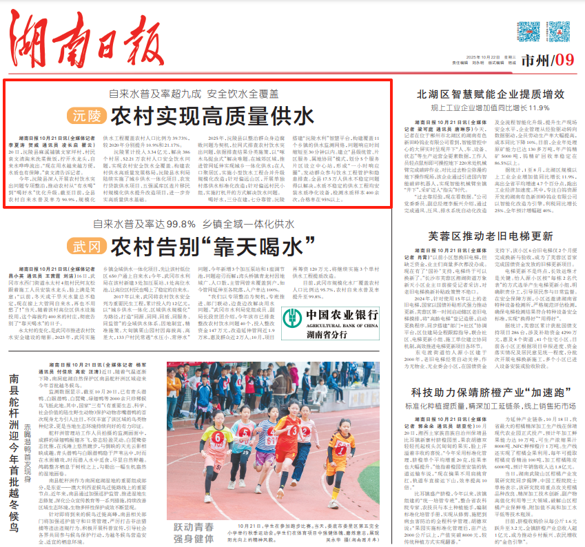 今年,沅陵县深入开展农村饮水突出问题专项整治,推动农村从“有水喝”到“喝好水”优化升级。截至目前,全县农村自来水普及率为90.9%,规模化供水工程覆盖农村人口比例为39.73%,较2020年分别提升10.9%和21.17%。