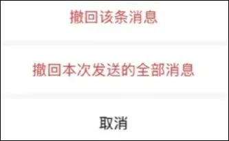 之前执行撤回操作时,会弹出“撤回该条消息?”的弹窗,需点击“撤回”才能完成操作。由于每次只能撤回一条消息,一旦出现一次性发错多条消息的情况,就会陷入麻烦。