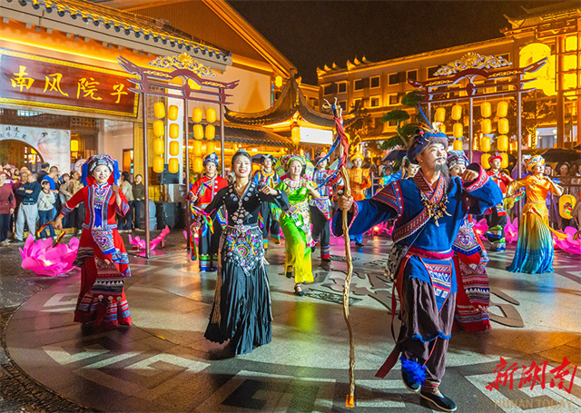 On October 19, the 4th Yongzhou Tourism Development Conference kicked off at the Jiuyi Mountain Scenic Area in Ningyuan County. Themed "Let's go to Yongzhou," the conference innovatively integrated mobile theater, intangible cultural heritage performances, and digital technology to inaugurate an immersive cultural tourism event featuring the culture of Emperor Shun. Through experiencing a dialogue between ancient and modern times, tourists gained insight into the cultural traditions of Yongzhou. The photo shows people watching a live performance. (Photo/Wen Jiaxing)