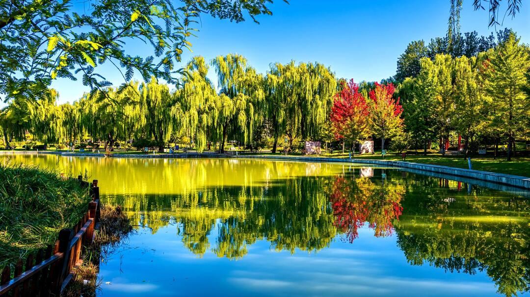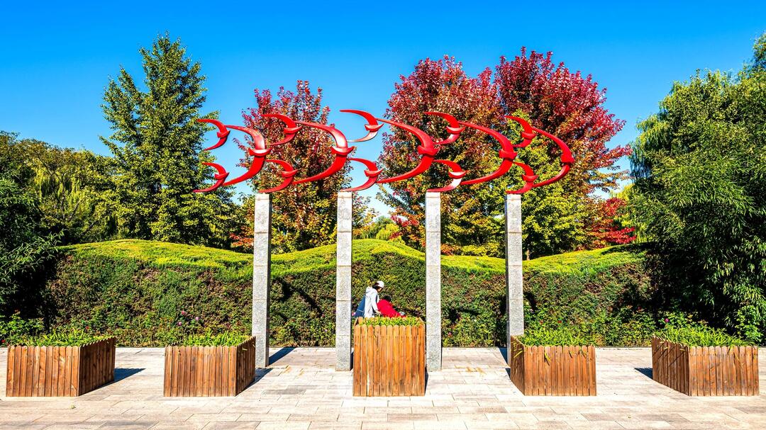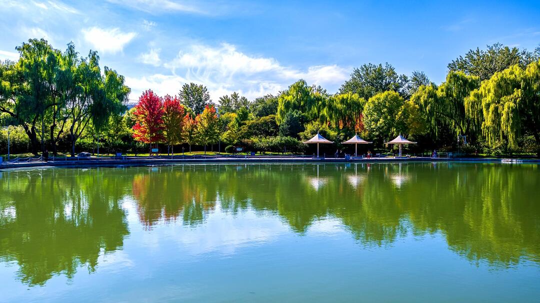 顺义卧龙公园在碧波映照下,犹如打翻了秋日的“调色板”,公园处处皆景,浑然天成一幅秋日画卷。 刘建新 摄