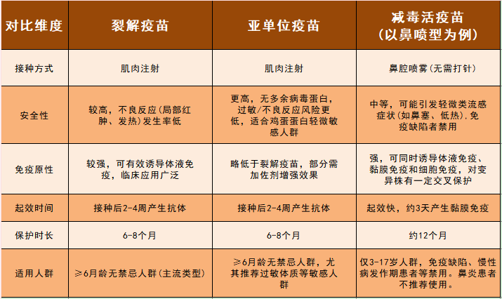 从接种方式看,注射型疫苗适合大多数人群,鼻喷型减毒活疫苗则适用于3-17岁人群,通过鼻腔喷雾接种,无需注射,更易被儿童接受。王婷提醒,对鸡蛋过敏、急性疾病发作期、免疫功能严重低下等人群,需提前咨询医生,确认是否适合接种。