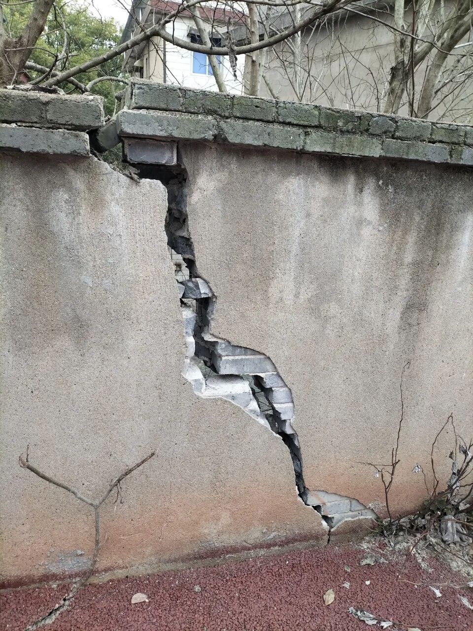 湘氮老三区建于上世纪60年代末,是典型的老旧小区,基础设施老化问题日益凸显。其中,8栋旁一段长约40米的砖混围墙因年久失修,长期遭受风雨侵蚀,墙体多处砖块松动、裂缝纵横,整体明显倾斜,存在严重倒塌风险。更令人担忧的是,1栋入口处一段10余米长的护坡围墙,因周边野生树木根系不断生长挤压,墙体被撑出多道又深又长的裂缝,最宽处达10厘米,而下面就是居民日常通行的要道,这堵墙成了悬在头顶的“定时炸弹”。