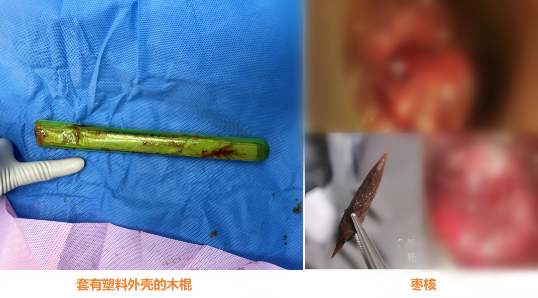 这些异物的危害不容小觑:部分异物可能会在肠道内“潜伏”,悄无声息地引发肛周脓肿等疾病;但大多数时候,会直接导致疼痛、出血或排便困难等问题。因此,一旦发现直肠内有异物,需尽早取出,最大程度减少其对肠道的损害。近一年内,肛肠科已从患者体内取出多种直肠异物,包括套有塑料外壳的木棍、完整的苹果、枣核等。