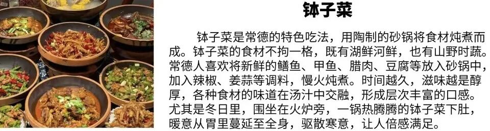 常德钵子菜、米粉、擂茶都有着湘菜的“热锅气”,还原了陶渊明笔下“不足为外人道也”的田园滋味。而在柳叶湖畔的石锅鱼也让风景和美食同步。常德和株洲醴陵都有酱板鸭,闻名遐迩。