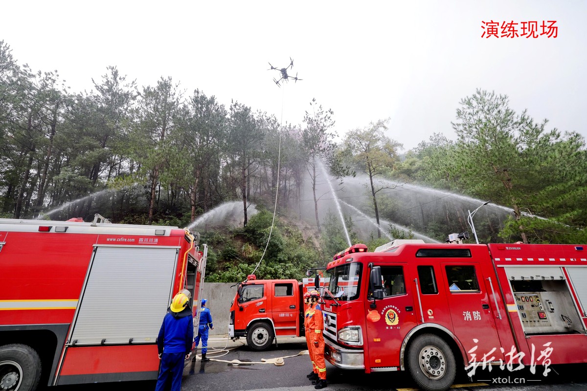本次演练模拟突发火情场景,重点演练了风险防控、监测预警、信息接处、先期处置、启动响应、攻坚作战等全流程科目,充分检验了应急指挥、协同联动与森林灭火救援实战能力。韶山市消防救援大队、省韶山管理局防火突击队、乡镇应急消防救援队等20支队伍400余人参演,动用无人机、森林消防管网系统、远程供水车等先进装备,实现“空天地”一体化协同作战。