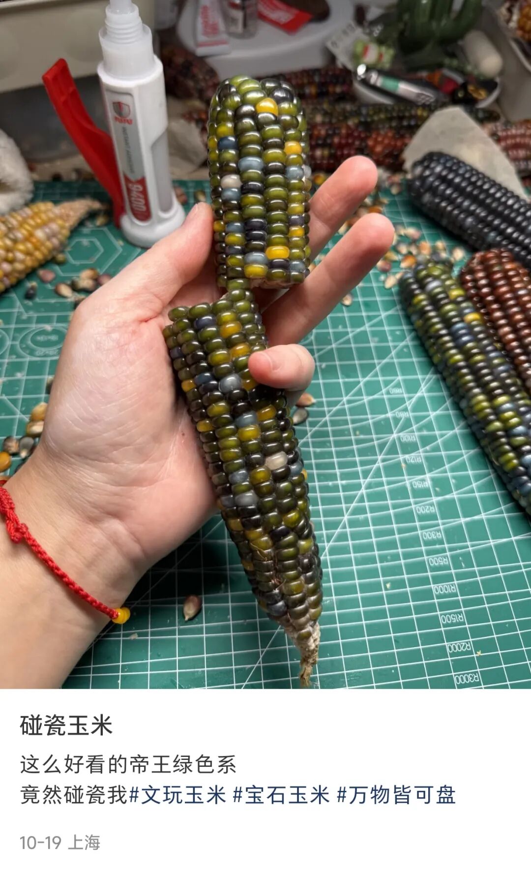 丁丁也表示,文玩玉米的走红其实和当下的“万物皆可盘”有关,“很多消费者追求的并不是材质昂贵,而是通过‘盘’这个动作,舒缓压力、消磨时间;另外还可以从文玩玉米的变化当中得到情绪价值,实现‘悦己消费’。”