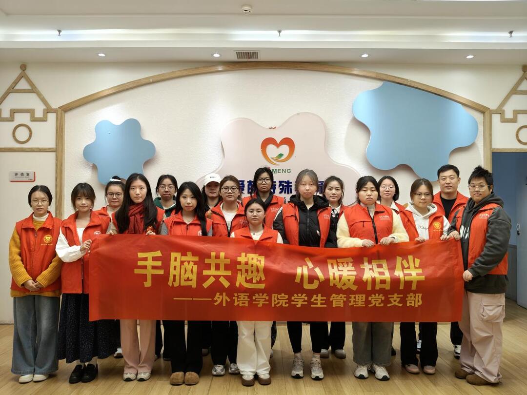 为弘扬“奉献、友爱、互助、进步”的志愿服务精神,强化党员的责任与担当,彰显党员先锋模范作用,引导社会关怀与爱护弱势群体,10月21日下午,长沙民政职院外语学院学生管理党支部联合特殊儿童教育机构,开展了“手脑共趣,心暖相伴”志愿实践活动,支部全体党员参加。