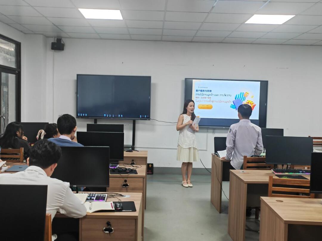 钟璇主讲的《客户服务与管理》课程,则精准对接老挝电商产业“客服体系不完善、跨境沟通能力弱”的发展痛点,将中国跨境电商平台的客服实战经验转化为适配老挝的教学内容。通过模拟“跨境订单咨询应答”“物流延误纠纷处理”“客户满意度回访”等真实场景,结合老挝大米跨境销售案例研讨,详细拆解售前需求挖掘、售后问题解决、长期客户关系维护等关键模块,还现场演示了智能客服系统、多语言翻译工具的操作方法。