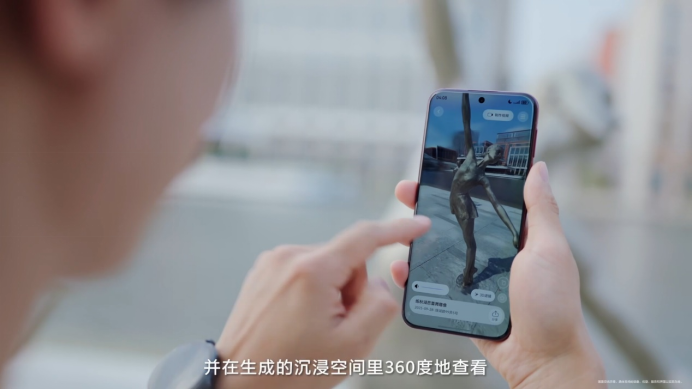 环绕拍摄即可生成3D视频:用户只需将画面中的圆圈对准物体中心,通过环绕式拍摄视频并进行3D重建,即可在生成的沉浸空间Interactive Photo里360度查看,进行放大或缩小操作。