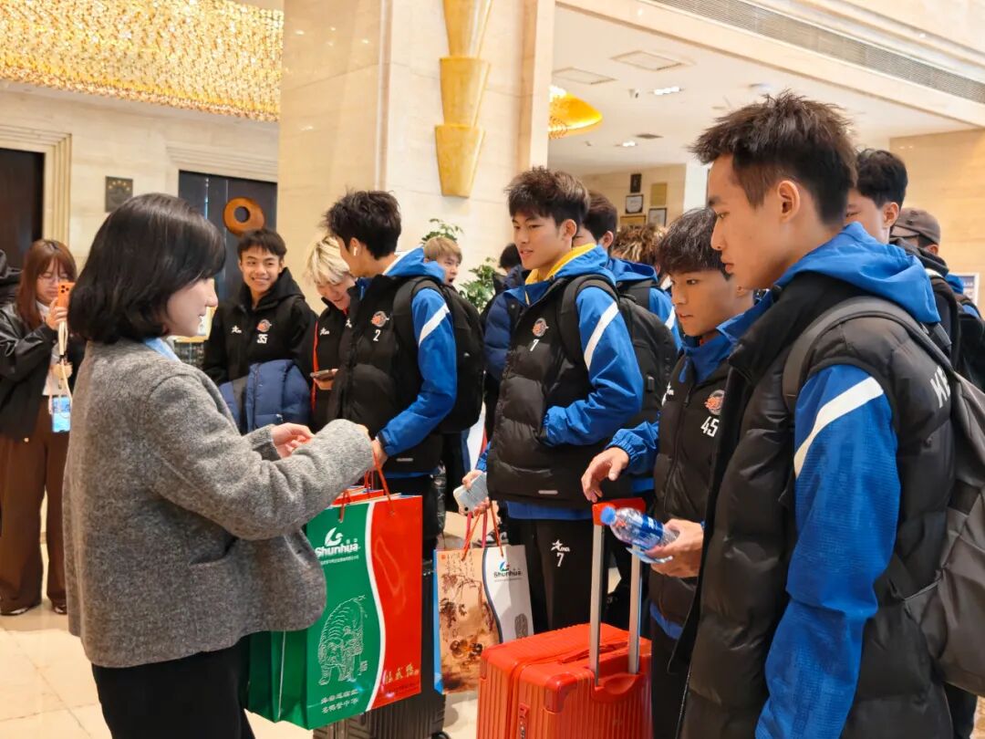 抵达酒店后,“湘超”郴州赛区冠名商湖南临武舜华鸭业发展有限责任公司准备了简短而温馨的欢迎仪式。工作人员为球员们送上精心准备的伴手礼,表达对他们的热烈欢迎,并诚挚邀请球员们在比赛之余,再次来到郴州,欣赏郴州美景、品尝郴州美食。“郴州人民太热情了!感谢郴州人民!”娄底队员表示,郴州人民的热情让自己在冬日感受到浓浓的暖意,大家也会在24日全力以赴,为球迷们奉献一场精彩比赛。