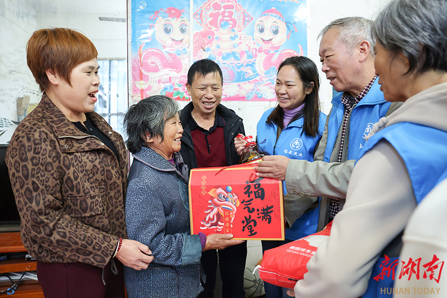 10月23日,临武县舜峰镇沐塘村,志愿者为71岁的邝爱莲送上慰问品。连日来,该县慈善总会开展“长寿之乡·临聚关怀”敬老活动,组织志愿者为220名空巢、高龄老人送去生活物资,营造浓厚的尊老敬老社会氛围。 陈卫平 摄(湖南图片库)